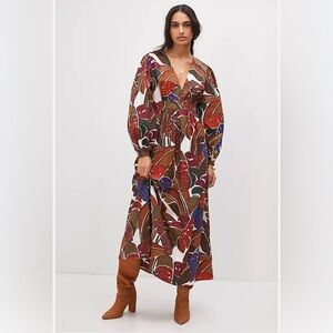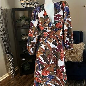 Anthropologie Leaf Print Long Sleeve Dress