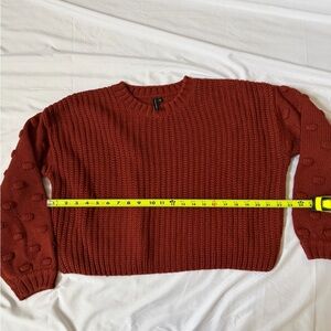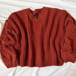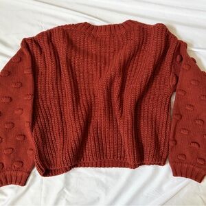 Warm brick knit pullover with intricate texture.