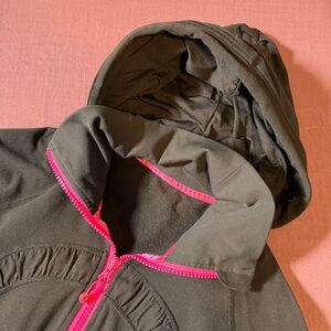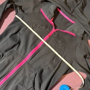 Lululemon Long Jacket with Hood in Black with Pink Zipper - Size 8