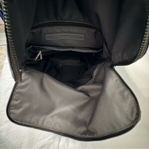 Lululemon Rise & Shine Backpack in classic black, a sleek and structured performance backpack originally released in 2016 and now hard to find in excellent condition. Designed with clean lines and subtle reflective details, this bag is both functional and elevated—perfect for city wear, travel, or studio days. This example is in like-new condition and includes the original removable interior pouch, an often-missing accessory used for shoes or separating worn items.