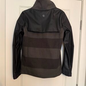 Lululemon Size 8 Brisky Biker Jacket Black Gray Horizontal Stripes Faux Leather - RARE and EUC.