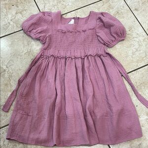 This charming pink kids dress is perfect for any occasion. Its soft cotton Gauze fabric and delightful design make it a must-have for your child's wardrobe.