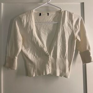 This elegant white cardigan is perfect for any occasion. Its classic design and soft fabric make it a versatile addition to your wardrobe.
