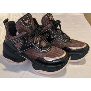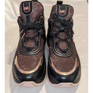This is a Fabulous Pair of MICHAEL Michael Kors Olympia Glitter Chain-Mesh and Leather Trainers. Women's Size 10M in Black with Rose Gold. These athletic shoes are in mint condition, with almost no signs of wear. Look and feels new! Please see pics for details.