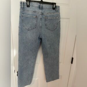 Stretchy straight leg jeans. Soft fabric for all-day comfort. Raw edge bottoms. Never worn, tags off.