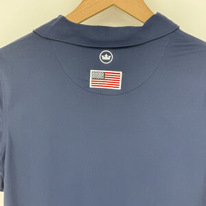 The Peter Millar Women's Navy Blue Performance Polo Shirt in size small is a stylish and functional piece of golf clothing. Made from a blend of polyester and spandex, this shirt offers UPF50 protection for added sun coverage, making it ideal for outdoor activities like golfing. The collared neckline and short sleeves provide a classic polo look, while the sleek navy blue color adds a sophisticated touch to any golf outfit. Perfect for women looking for a versatile and high-quality shirt to enhance their golfing experience.
