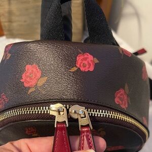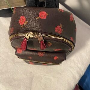 Coach Dark Brown Backpack with Red Floral Pattern no stains, no wear, almost new