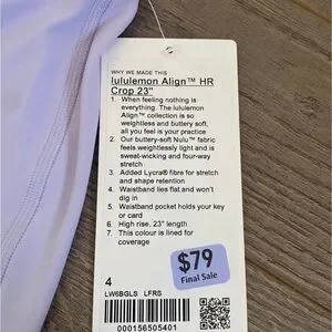Lululemon Align HR crop 23” Lavender Leggings size 4