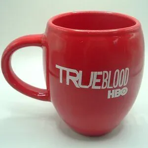 Promotional coffee mug from the HBO series TRUE BLOOD. Large, measuring approx 5" high and 5" across with handle. No chips or cracks. Wither unused or barely used. The white spots in the photos are just from the "ring lights" in my photography box. Ships well protected.