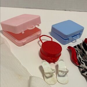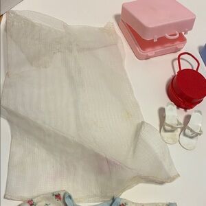 Assorted Vintage 50s & 60s Doll Clothing Set with Red, White, and Pink Pieces