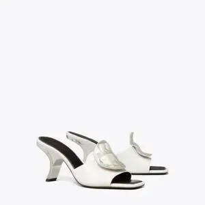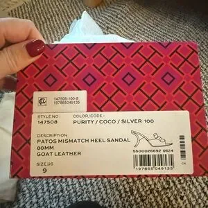 TORY BURCH Patos Mismatched Heel Sandal In Purity/coco/silver Size 9 New