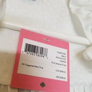 Kate Spade NWT White Fluid Jacquard Ruffle Blouse Womens XL Sheer Classy Classic