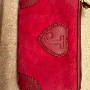 Elegant Juicy Couture clutch in vibrant pink. Features intricate black embroidery. Perfect for adding a chic touch.