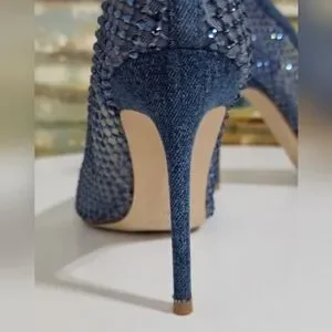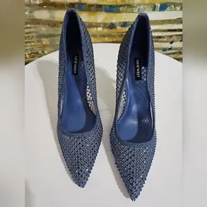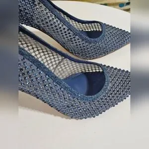 Nine West Freshe Denim Rhinestone Mesh Stiletto Pumps New Size 10