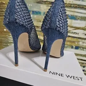 New Sample Women's Freshe Denim Rhinestone Mesh Stiletto Pumps. Step up your shoe game in the Nine West Freshe dress pumps. Featuring a sky-high stiletto heel, pointy toe and embellishments all over the shoe. The Freshe is anything but boring Founded in 1978, Nine West empowers women to take on the world in style, from day to night.
