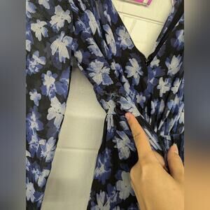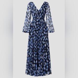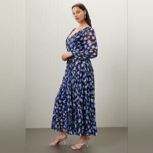 Rtr sz6 ML Monique Lhuillier Melanie Dress floral printed v-neck dark midnight