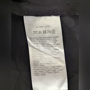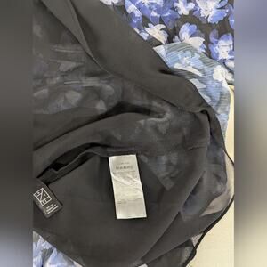 Black floral chiffon (100% Polyester). A-line. Long sleeves. V-neck. Back zipper closure. 58" from shoulder to hemline. Imported.