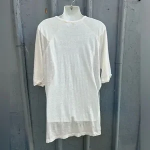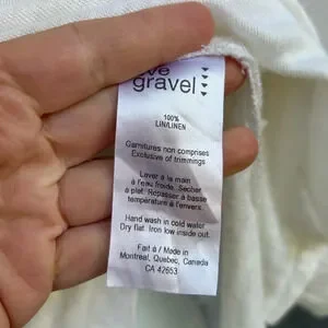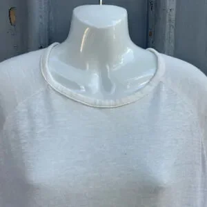 Eve Gravel Linen Tee. Crew neck, open sides, can be tied in a knot, linen.