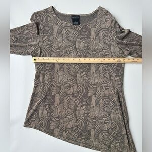 Citiknits Tan Gray Swirl Slinky Stretch Asymmetrical Blouse Top Womens Large