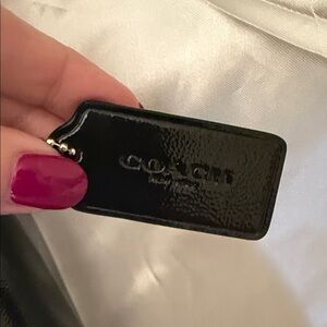 Crinkle patent leather Inside zip pocket Turnlock closure fabric lining Adjustable strap with 20 1/2 drop for shoulder or crossbody wear 9 3/4 (L) x 9 1/2 (H) x 3 1/4 (W) Style No. CCF02