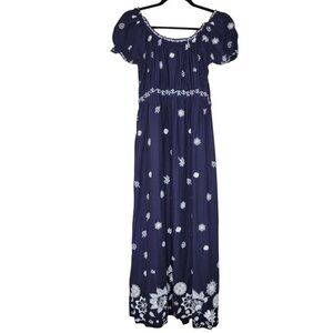 Gretchen Scott Floral Embroidered Midi Dress XS Cottagecore Pockets Empire Waist