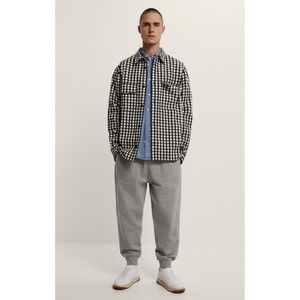Zara Men's Flannel Shirt Jacket Size M Black White Gingham Button Up Over-shirt