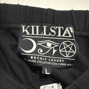 Killstar Black Leggings with White Cat Design