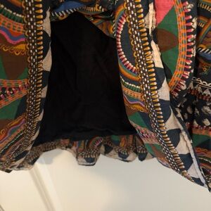 Farm Rio printed vibrant tribal print mini dress. V-neck line. Long sleeves. Fully lined. 100% cotton. Gently used condition. Size large