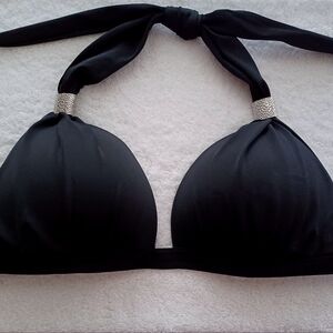 Stylish Venus Goddess Enhancer Push-Up black halter bikini top featuring elegant silver accents. Perfect for a chic beach look.