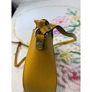 Discover your new go-to accessory with this chic mustard yellow leather crossbody bag. Its elegant saddle shape and secure flap closure with a polished silver buckle exude timeless sophistication. The textured leather finish adds a touch of tactile luxury, while the adjustable strap ensures comfortable wear. Perfectly sized for essentials, this bag is ideal for brunches, shopping excursions, or evening outings.