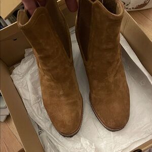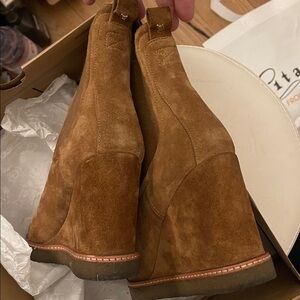 Veronica Bear Aari Waterproof Suede Chelsea Wedge.4” heel 3/4” platform, 5” shaft . (Wore 1 time to dinner in a NYC cab n back home). I have a torn ligament in my ankle. Never wore again. Cannot wear heels anymore. LIKE BRAND NEW