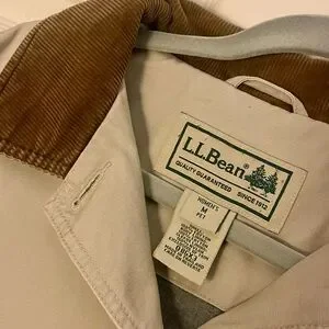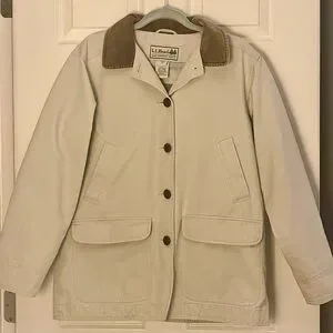 Vintage L.L. Bean Women's Beige Utility Jacket with Brown Corduroy Collar