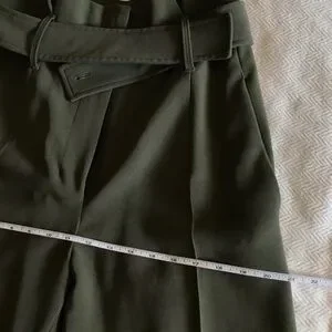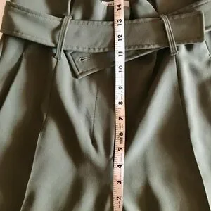 Glorious ultra-high waist belted, dress pant. In like-new condition. Made with Japanese gabardine, these wide-leg trousers have a high paper-bag waist with a self-tie belt."