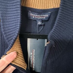 Roundtree & Yorke Men's Zip-Up Sweater in Blue and Brown NWT