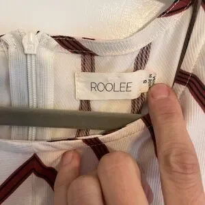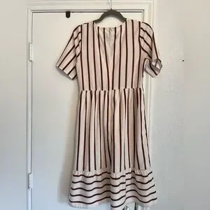 Stylish dress with geometric patterns. Features a back zipper. Easy, casual throw-on dress that is so comfortable. Fits a size 4/S.