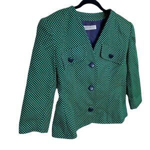 Givenchy size 10 vintage navy and green polka dot vintage blazer.