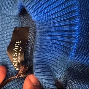 This is a brand new blue Versace Medusa head sweater with tags still attached. Versace does tend to run small to size. Like all of my products 100% authenticity or money back. Feel free to leave offers.