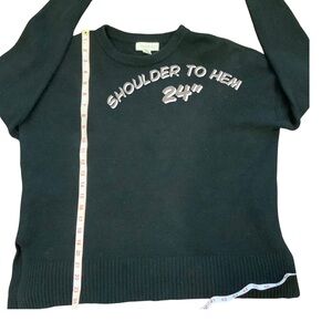 Stay cozy and stylish in this classic Treasure & Bond women’s crewneck sweater in size XS. The slightly oversized, relaxed fit gives it a modern slouchy vibe while remaining flattering—perfect for layering over tees, tanks, or dresses in fall and winter. Rich black color pairs effortlessly with everything from jeans to leggings. Features ribbed crew neck, cuffs, and hem for added texture and durability. Soft knit fabric feels luxurious against the skin. Excellent pre-owned condition with no pilling, stains, holes, or flaws. Please check photos for exact measurements (bust, length, sleeves, etc.). A timeless wardrobe staple from Nordstrom’s in-house brand! Bundle with other items for savings. Smoke-free home.