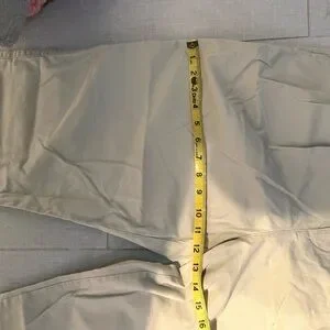 See photos for measurements. Sorry the pants are wrinkled a bit. Hard to see all details. Pleats in front. Elasticized waist in back- doesn’t show in the front. Legs are wide and comfortable (not considered “wide leg” at the ankle)