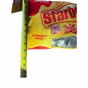 Vibrant plush pillow inspired by Starburst candy. Features bright red and yellow colors. Includes fun plush minis inside.
