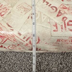 Such an iconic vintage piece from MM6 Margiela featuring a distressed print inspired by fragile stickers. Overall, bag is clean, but does have scuffs and peeling starting to happen at the handles - see photos. Such a cool piece for any collector! Stylish and versatile for any occasion.