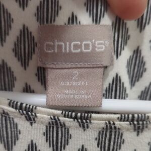 Chico's Black and White Geometric Long Sleeve Top Classic Basic