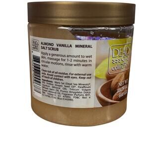 Almond Vanilla and Natural Dead Sea Salt Scrub. Salt Scrub combines Dead Sea Salt and minerals with natural Almond essential oils and extracts. The scrub helps to exfoliate the top layer of dead skin cells, helping circulation, and helping to revive and calm the skin. While smoothing and stimulating the skin the body scrub will gently buff away dead skin cells leaving skin smooth and refreshed. Bring the wonders and power of the Dead Sea and modern science into your home. For a complete SPA experience, we recommend first using our Almond Vanilla & Natural Dead Sea Bath Salts. This product combination was created to work in synergy to help moisturize and nourish your skin.