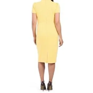 Marked size 12, 6% spandex, has some stretch. 50’s wiggle style dress.