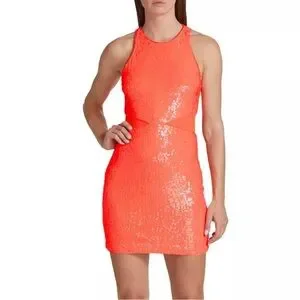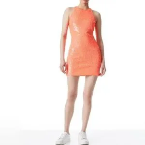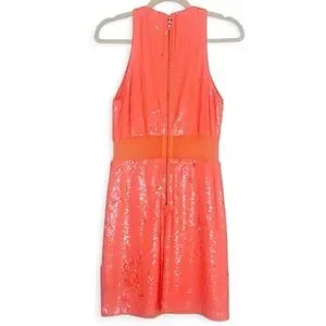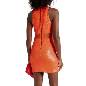Alice + Olivia Cara Orange Sequined Mesh Sleeveless Mini Dress Size 2