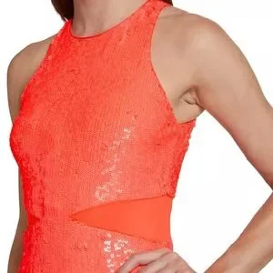Alice + Olivia Cara Orange Sequined Mesh Sleeveless Mini Dress