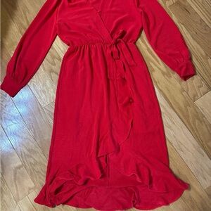 Fraiche By J Red Long Sleeve V-Neck Cocktail Dress Size Medium