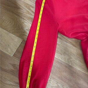 This vibrant red dress is perfect for a night out, featuring a flattering V-neckline and elegant bishop sleeves. The flowing skirt and defined waistline create a sophisticated silhouette, making it an ideal choice for cocktail occasions.
