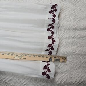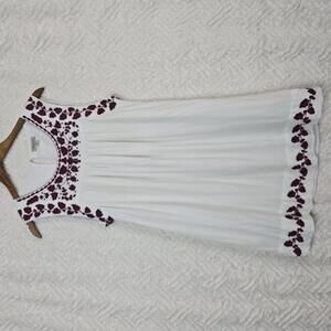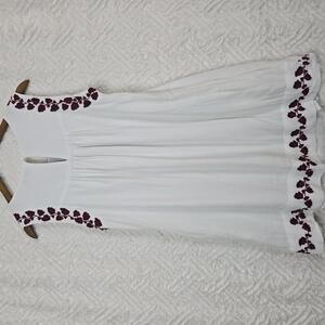 Lucky Brand Hanna shift White Dress with Burgundy Floral Embroidery, Size M