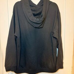 Cozy black hoodie featuring a stylish rainbow pastel logo.